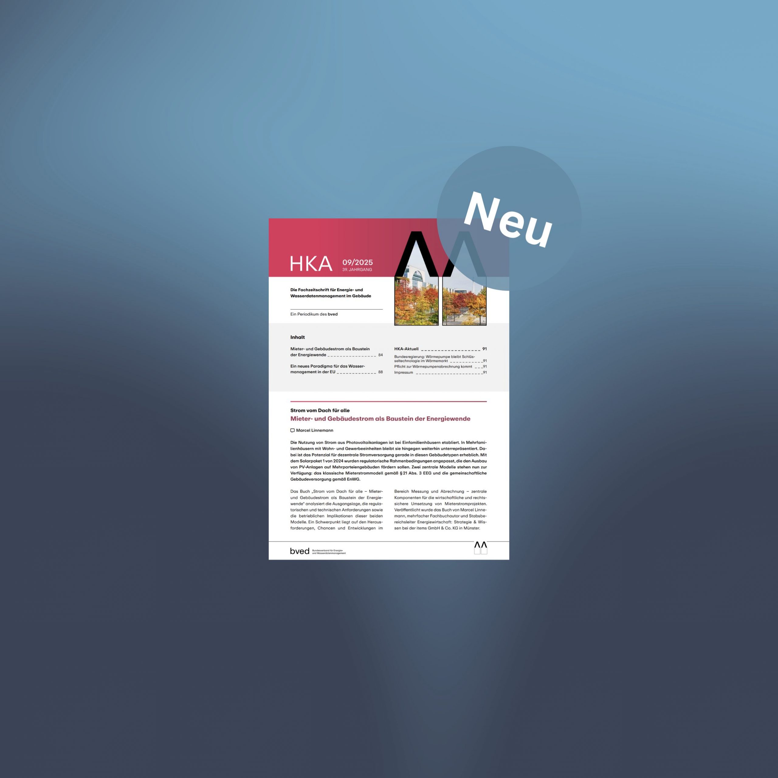 In dieser Ausgabe: Seit dem Solarpaket I im vergangenen Jahr ist der Weg frei für die gemeinschaftliche Gebäudeversorgung. Doch wie ist der Stand heute und welche Herausforderungen und Chancen gibt es für moderne Messkonzepte? Der Experte Marcel Linnemann macht in der aktuellen HKA einen inhaltlichen Aufschlag zu dem Thema und stellt dabei sein neues Buch […]