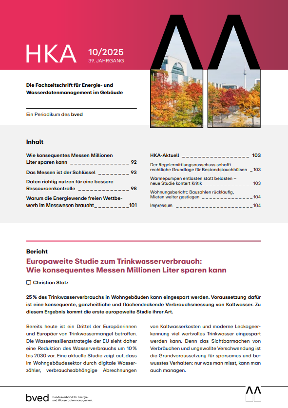 Als gelungene Überleitung lesen Sie in dieser Ausgabe ebenfalls den dritten Teil der vierteiligen Artikelserie von Guillaume Février über die EU-Wasserresilienzstrategie. Er verdeutlicht darin die Relevanz des flächendeckenden Einsatzes von Kaltwasserzählern in ganz Europa, um die Ziele der Strategie erreichen zu können.